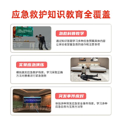 - 突发事件应对体验模块:涵盖防溺水、防触电、预防高空坠落等多种突发应急安全事件场景,学习者可沉浸式体验并系统学习应急自救与互救方法,确保应急救护知识无盲区、无死角。