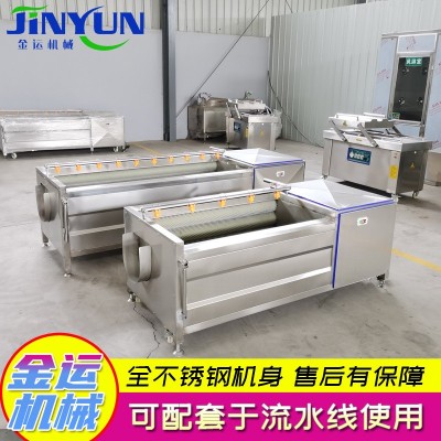 另外加装毛刷,能有效去除物品中的毛发。高压水流使物料呈翻滚状态,去除产品表面农残功效,洗菜机里漂浮物可以从溢流槽溢出,沉淀物从口排出,以达到清洗的目的。