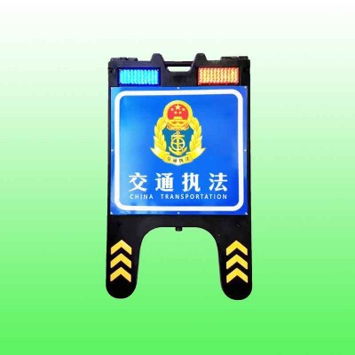 本产品是一款可折叠的临检、查车、施工、勘察等警示牌,方便携带、重量轻巧;DC充电口,可直接充电,运营成本低;实用性强、红蓝爆闪、亮度高、动态警示、警示效果好等特点;具有发光效果,灵活性高,根据现场需求可设计不同内容展示;锂电池更耐用,3年以上使用寿命,所以深受各单位喜爱。 产品组成:可折叠式支架+反光膜+发光单组。